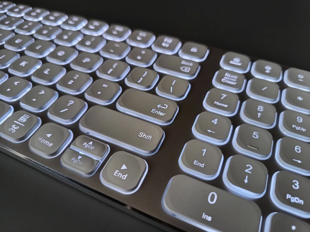 Mimo to, reszta aspektów jest na medal. To klawiatura dla tych, którzy szukają krótszego modelu bez rezygnacji z numerycznego bloku, i nie potrzebują wygody strzałek na co dzień. W porównaniu do podobnych modeli, jak Logitech MX Keys Mini, wyróżnia się ceną i aluminiowym wykończeniem.